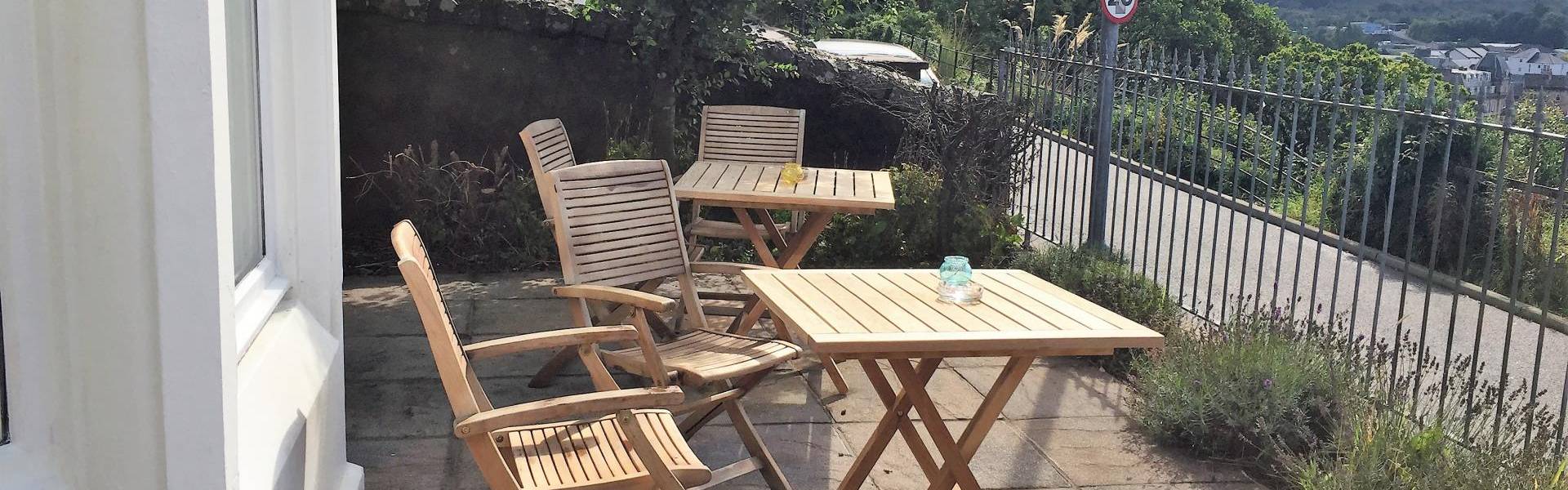 The elevated terrace at Invercloy has wooden furniture where guests can enjoy a glass of wine. It is a completely non-smoking establishment except for the terrace.
